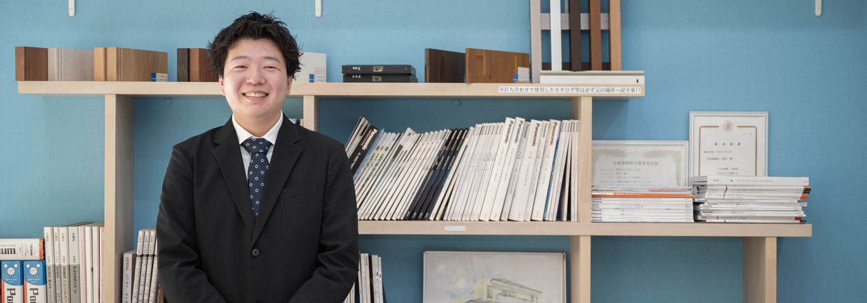 子どものころからレゴブロックや、祖父母が手掛ける機械設計の図面に興味があり、自然と「考えたものが形になる仕事」に憧れを持つようになりました。工業高校から建築の専門学校へ進学し、現在は設計部でアパートの設計を担当しています。