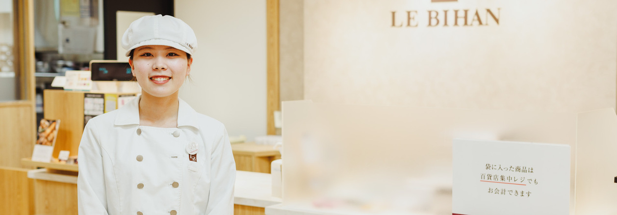 製菓の専門学校で学ぶ中で、将来は「食」を通して人の心に残る価値を届けたいと考えるようになりました。就職活動では複数の企業説明を受けましたが、エーデルワイスの「手作り」にこだわる姿勢、一つひとつの商品を丁寧に届けようとする思いに強く共感したことが入社の決め手です。また、和菓子・洋菓子・パンと多様な商品を扱う事業形態は、「誰もが安心して食を楽しめる店をつくる」という私自身の夢を実現するうえで、とても学びの多い環境だと感じました。多くの人に笑顔になっていただきながら、幅広い経験を積める場所だと感じたので、迷わず「ここで頑張ろう」と思えました。