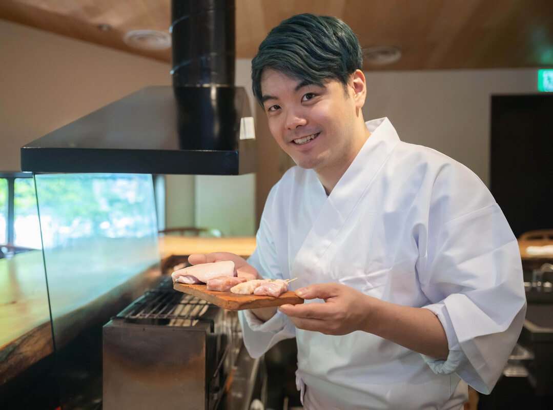焼鳥の世界に入って印象的だったのは、火入れの難しさです。以前、洋食調理でも肉を扱っていましたが、それと焼鳥はまったくの別物。ステーキ肉にきれいに火を通すより、一本の焼き鳥を仕上げることの方が難しく、(小さい肉を焼くって、こんなに技術がいるのか)と驚いたことを記憶しています。また、会社として、「お客様にいかに気持ちよく帰っていただけるか」という点をとことん追求していることにも、大いに触発を受けました。「自分がお客さんだったらどうして欲しいか」という視点で心を配り、当たり前の一歩先を行くサービスを提供できるよう日々努めています。