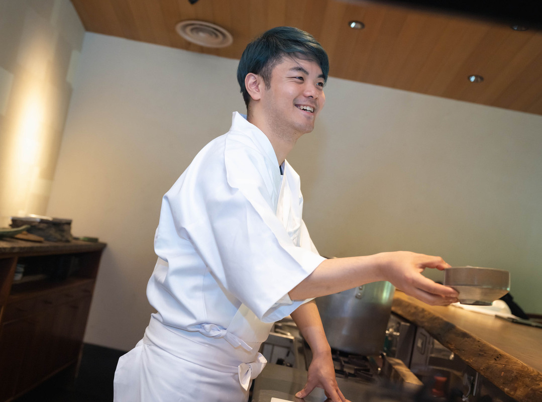 2024年3月、北新地にオープンした「坐」は、出店計画から立ち上げを担当。お店のレイアウトから工事会社との打ち合わせ、メニュー開発、仕入れ業者の選定まで、「出資をしてもらって独立の予行練習をした」と感じるほど、貴重な経験をさせていただきました。大変なことは山ほどありましたが、店という形ができ、営業が始まった時は感無量。什器や備品の配置など、考え抜いて作った導線が予想通りに機能したときは最高に気持ちよかったです。今は店長としてお店を運営しながら、一品料理や季節メニューの考案・試作などにもどんどんチャレンジしています