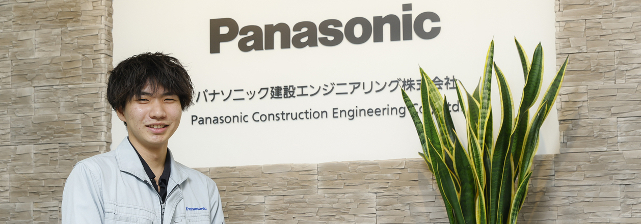 高校生のころ、コロナ禍で住環境やリノベーションに興味が湧き、そこから建設業界に関心を持つようになりました。専門学校では建築設計を学んでいましたが、就職活動でパナソニック建設エンジニアリングが手掛ける高品質な住宅設備施工に惹かれ、説明会へ参加。そのときに感じた社内の穏やかな雰囲気や、若手にも早くから任せてもらえる社風が印象的で、ここで働きたいと入社を決めました。実際に働き始めてからも、先輩方が日々声をかけてくださり、イメージどおりの社風で安心感がありました。図面の見方や仕事の段取りも、不安を感じる前に必ず先輩がフォローしてくださり、心強かったです。