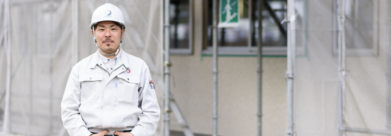 入社して14年が経ちます。私だけでなく、長く勤めている人が多いのも三日月建設の特徴です。長く勤められる理由は人それぞれだと思いますが、私が三日月建設で働き続けている大きな理由は、一緒に働く“仲間”だと感じています。悩んでいることがあれば、先輩たちがいつも親身になって助けてくれるんです。それは若手の時だけでなく、現場監督なった今でも変わりません。先日も悩んでいることを先輩に相談すると、わざわざ私の現場に来て一緒に解決策を考えてくれました。こうして、何かあったら助けてくれる先輩、そして、助け合うという社風が、私がこの会社で長く勤めている一番の理由です。