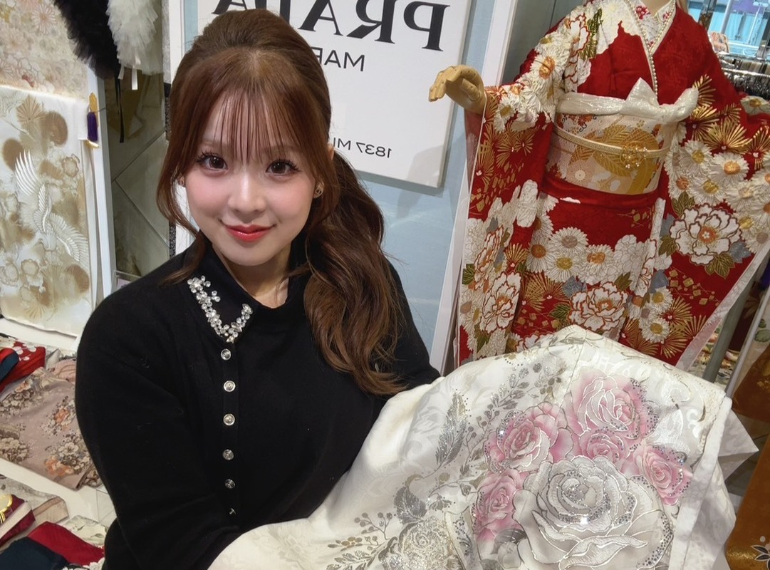 専門学校の時から着付けが好きで、着付けに携わる仕事がしたいと思いTAKAZENに入社しました。TAKAZENはお店やスタッフ自身がキラキラしていて「ここで働きたい!」とすぐに思いました。またTAKAZENは”日々成長が出来る場所”だと思います。着付けの事を何もわからなくても、着付け教室などに参加も出来ます!また、お客様との距離が近いというのもTAKAZENの魅力です。一生に一度の成人式のお振袖選びのお手伝いができ、そして感謝される。そういった面でもやり甲斐を感じられるお仕事です。スタッフ同士も年齢が近く仲がいいので日々楽しく働いています♡