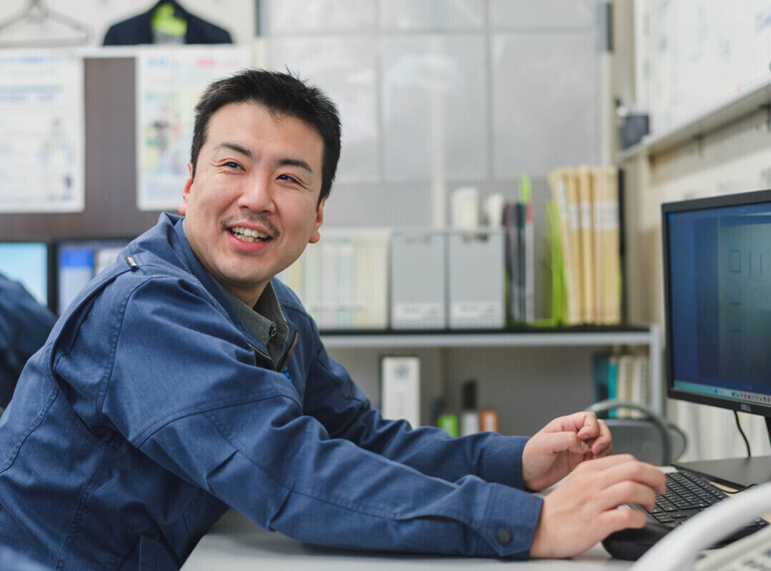 高校時代から建築を学び、前職ではコンクリートの強度を調べる試験機関で、試験や研究に関わっていました。働く中で「もっと建設のことを深く学びたい」という思いが強くなり、学びなおしのために夜間の専門学校へ進学。業界研究としていろいろな企業を調べる中、出会ったのがこの会社です。