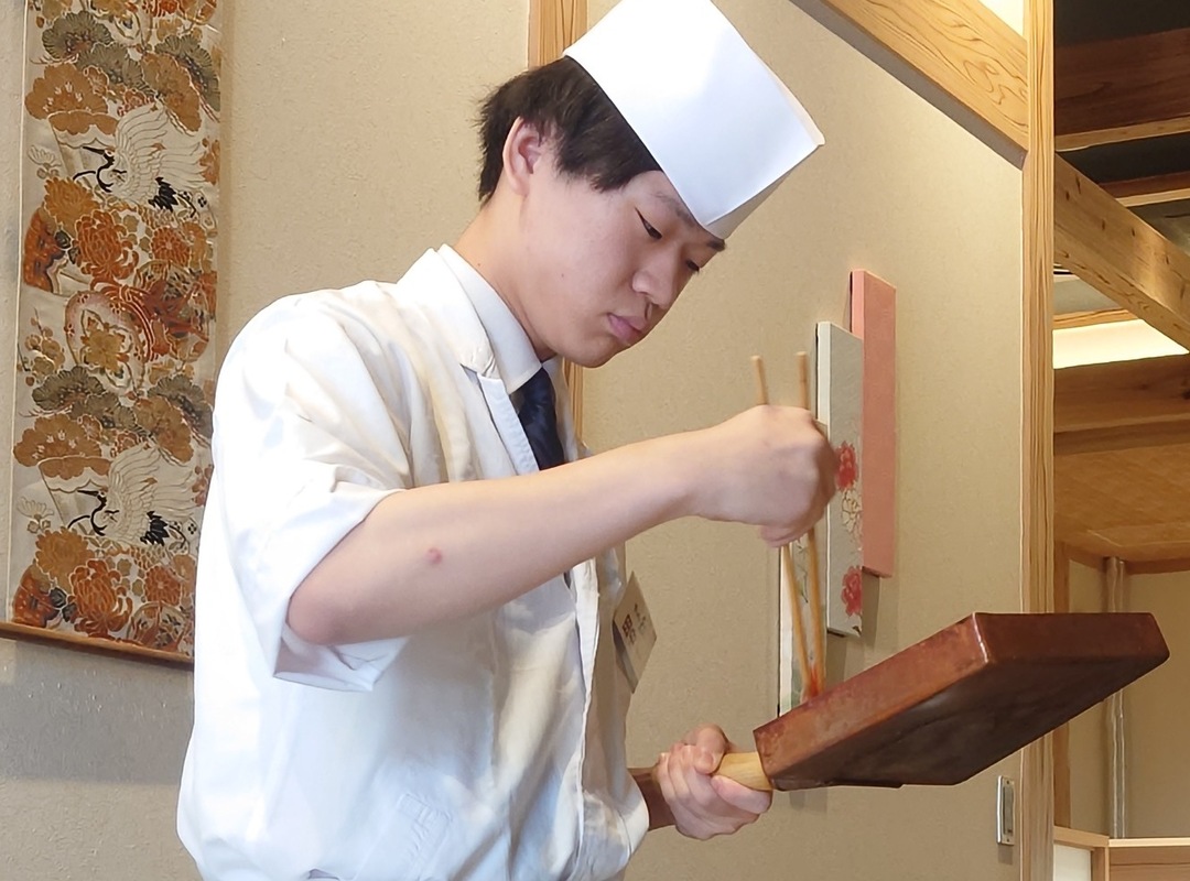 現在は八寸場を担当していますが、包丁を使っている時間が一番楽しいです。ただ綺麗に切るだけでなく、大きさを正確に揃え、スピードと正確さの両方を追求することにやりがいを感じています。想像していた堅苦しさとは違い、楽しみながら技術を磨けるのは、この職場ならではの魅力だと思います。