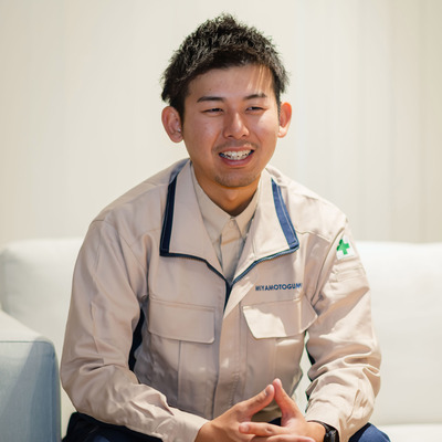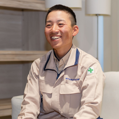 高校時代にアルバイトで建設の仕事を経験した際、働いてお金をもらう達成感や人とのつながりを感じたことが印象に残り、この業界に進むことを決めました。就職にあたっては、同じ業界や職種であれば仕事内容はほぼ同じと思っていたので、企業の文化や独自性を重視。その中で、他社との違いを一番わかりやすく伝えてくれたのが宮本組だったんです。「コーヒーの淹れ方教室」や「高級車の貸し出し」など、一風変わった取り組みがたくさんあることに魅力を感じました。他にも多数の企業説明を聞きましたが、唯一興味を持った宮本組だったので、この会社で頑張ってみたい!と気持ちが固まりました。