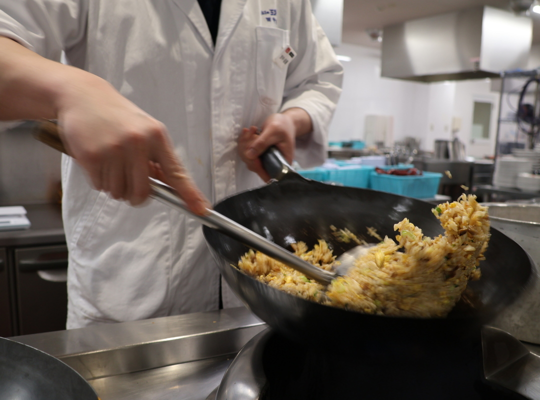 料理の知識や技術を学び就職先をどうしようかと考える時期に、その当時からすでに餃子の王将でアルバイトをしていましたが、共に働く先輩方の情熱がすごく、オープンキッチンでの活気ある職場環境や、エリアマネージャーが楽しそうに仕事をされていることを感じました。これから先も情熱を持って働きたいことや将来を目指したいキャリアビジョンが見えたことから王将しか考えられないと思い、入社を決意しました。