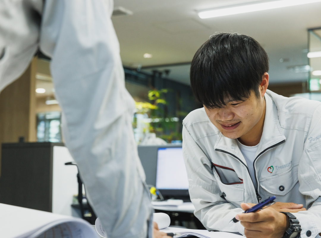 建設業界に入ったばかりの頃は、正直、つらいなと感じることばかりでした。でも、続ける中で何かしら、面白い!と感じることに出会うと、仕事はどんどん楽しくなります。みなさんにも、その瞬間に出会うまで歩みを止めず、頑張ってほしいです。トレジャーには励まし合える仲間がいるので、一緒に成長していきましょう。
