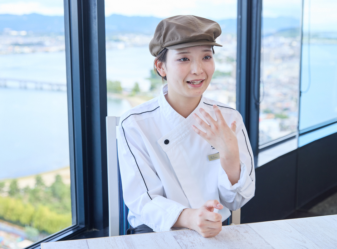 小学生のとき、家庭科の授業で習ったお味噌汁や野菜炒めを作って家族に喜ばれたことがうれしく、調理師を志しました。びわ湖大津プリンスホテルを志望したのは、当ホテルのボーセジュールでの両親の結婚記念日に同席し、料理の美しさやおいしさに衝撃を受けたからです。