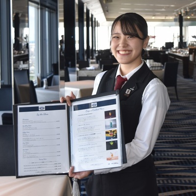 学生の頃アパホテルを利用した際、困っている私にスタッフの方が気付いて声をかけてくださいました。お客様一人ひとりをよく見ていて、積極的に素早く行動している姿に大変感動し、自分も同じようなサービスを提供したいと思い入社を決めました!特に良い経験だったのがクリスマスの特別ディナーコース。普段よりも高単価で、特別な日を楽しみにご来店されたお客様に、お料理も空間も楽しんでいただけるよう今までにない緊張感で臨んだことを覚えています!サービスは意外と体力勝負で1日2万歩も歩くほど!大変な部分もありますが、先輩や同期、調理スタッフとともに協力して営業できるのは大きなやりがいです!