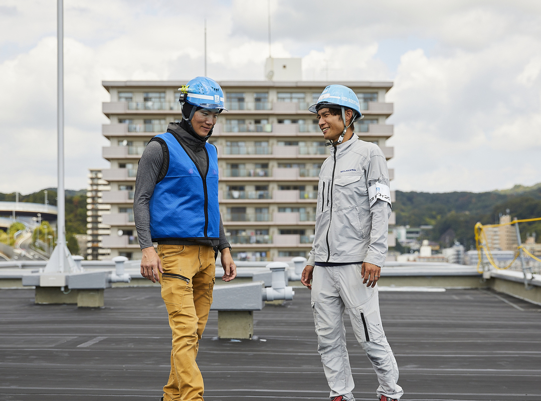 当社は元請会社として、屋上防水に止まらず大規模修繕工事にも携わることができるため、防水以外の幅広い知識と経験を身につけることができます。また、工事の規模が大きい分、仕事のやりがいと責任感も大きいです。今後は安全管理、工程管理、品質管理を無理なく、現場ごとにこなせるようになるため、現場での経験をより深く学んでいきたいと考えています。将来的には、お客様から会社としてではなく、一個人として信頼される営業マンを目指していきます。