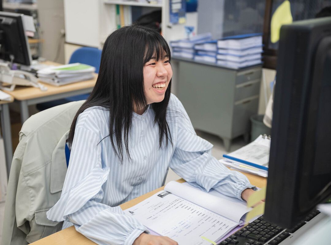 入社後は会社で使用しているCADソフト(CADEWA)を覚えることからスタートし、設計で使用する建築図のトレースに取り組みました。出来栄えを先輩に褒められると更にやる気が湧きましたし、間違っていても「こうするといいよ」と丁寧に教えていただけたのでありがたかったです。今でも心がけているのは、わからないことは、まずは自分で調べてみること。その方がより深く理解できますし、記憶にも残ると実感しています。社内では先輩方が、いつもいろんな情報を共有し合っているので、聞いているだけで勉強になることも多いですね。会話の内容や単語の意味など、分かることが増えるたびに、嬉しい気持ちになります。