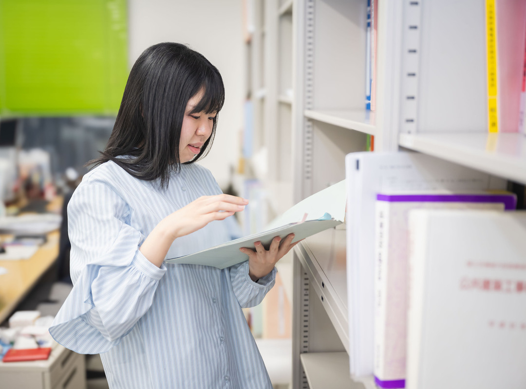 昔から絵を描くことが好きで、将来は絵本作家になりたいと思っていました。高校一年生の時、授業で製図を学んだことを機に、製図やデザインの面白さにハマるように。プロダクトデザインの資格も取得し、卒業後は、身につけた製図やCADのスキルを活かせる仕事に就きたいと考えていたところ、学校の求人で施設工学研究所を知り入社を決めました。会社見学では、想像以上に多くの女性社員が活躍している様子を見て、不安が軽減されたことが印象に残っています。また、入社後は、机上で学ぶよりも実際に手を動かして覚える、現場を見て学べるよう指導していただいたおかげで、興味を持ちながら仕事に慣れることができました。