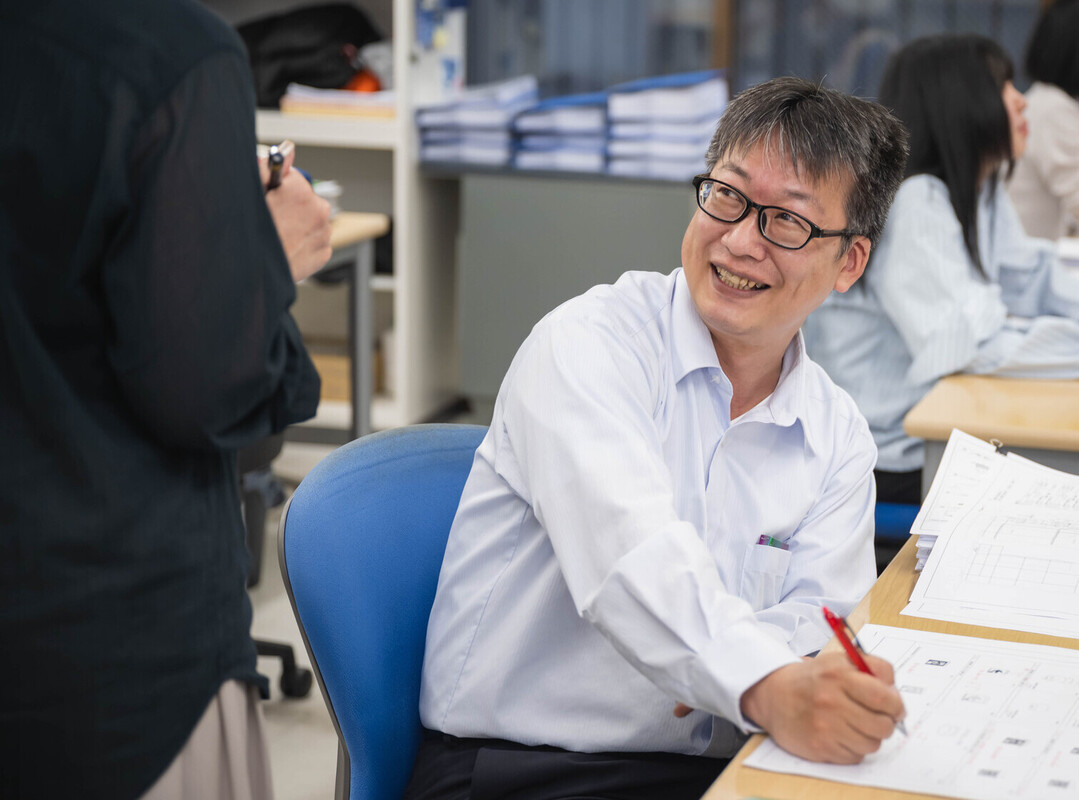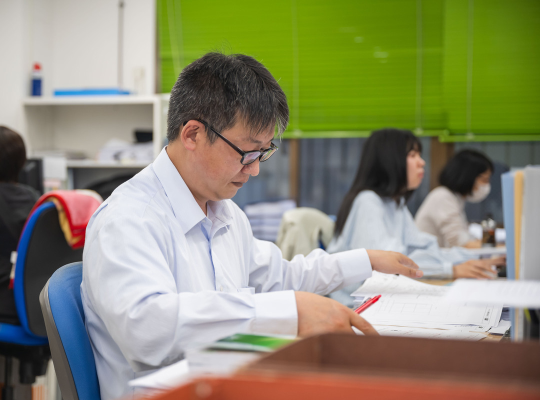 最初は先輩の打ち合わせや現場調査に同行して、事前に何を確認するのか、現地では何を調査するのかを学び、製図や積算(工事にかかる予算の計算)を覚えていきました。以前は工事施工をしていたため、物の名前などある程度の知識はありましたが、設計の根拠や法規については初めて知ることばかり。かつて現場で感じていた疑問を思い出し「なるほど、そういうことだったのか」と、納得することも多かったです。現在は、施工に従事してきた視点を活かし、工事をする人たちに「この設計図はわかりやすい」「親切だな」と思ってもらえるような設計図の作成を心がけています。