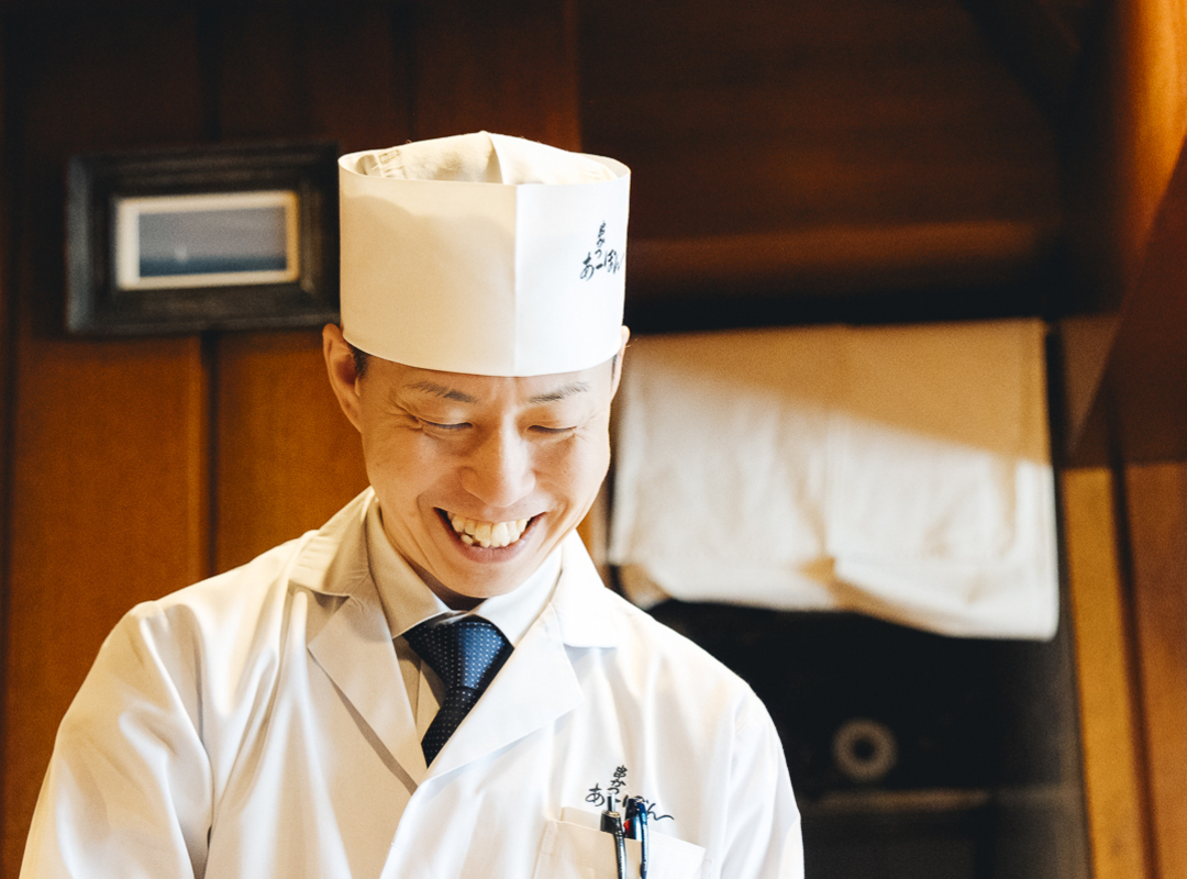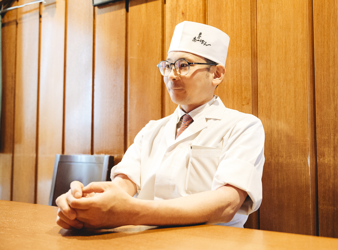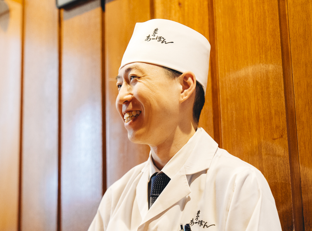 高校生のとき料理の世界に興味をもち、卒業後は当時アルバイトをしていた居酒屋に就職して経験を積みました。10年ほど経ち、そろそろ新しい環境に挑戦したいと思っていたときに、知人に紹介されたのが「あーぼん」との出会いです。現在の会長に初めてお会いした日に、「いつから働けますか?」と聞かれて驚きましたが、未知の世界に挑戦してみたいという気持ちが先に立ち、その場で入社を決めました。当時の「あーぼん」はすでに予約の取れない人気店で、連日満席。営業スタイルもこれまで経験してきた飲食業界とは別世界だったので、初心を思い返し、一から学ぶ気持ちで日々の仕事に向き合っていたことを覚えています。