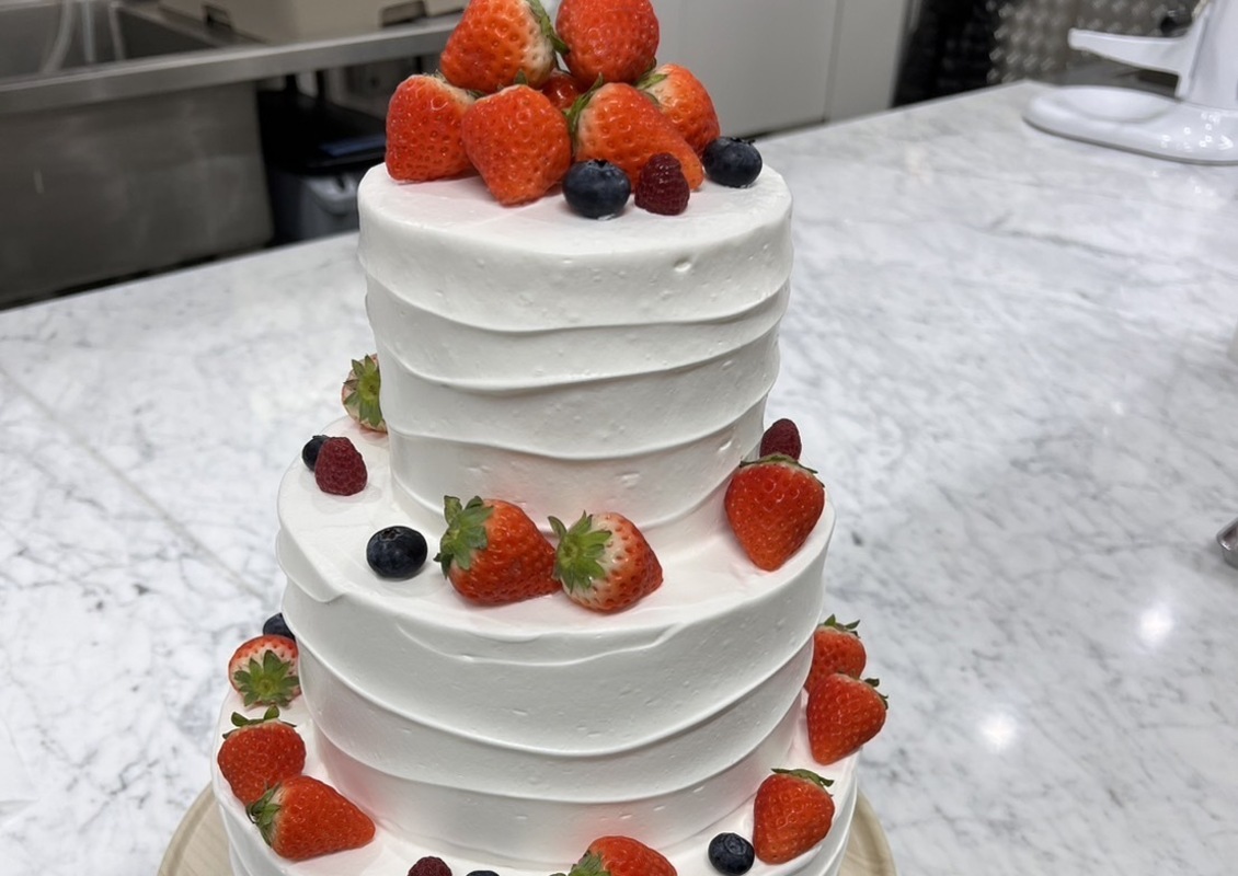 製菓チームでウェディングケーキを作りました。