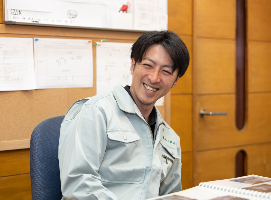 大学卒業後、地場の中堅ゼネコンに就職したのち、スーパーゼネコンに転職して、2017年に、家業であるこの会社に就きました。今は小さな会社ですが、会社の色々な資産や財務形態に強い将来性を感じました。今後、会社を堺で一番有名なゼネコンにしたいという思いで日々奮闘しています。