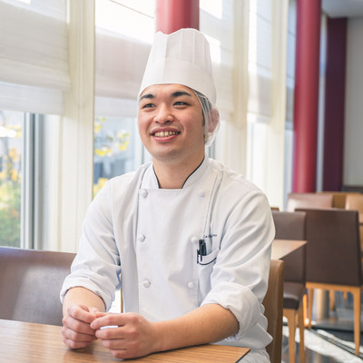 小学校6年生のときに親戚の結婚式に参加し、そこで初めて婚礼料理に触れたのが料理やブライダル業界に興味を持つきっかけでした。それからずっと関心を持ち続け、就活で弊社の会社説明の際に料理人としても人としても自己成長できるのではと感じたことが入社の決め手です。