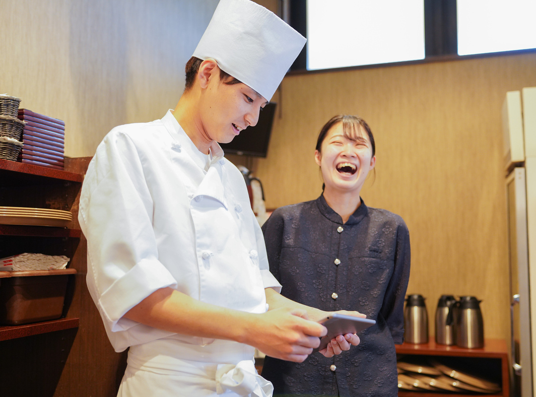 調理場にいるメンバーだけでなくサービススタッフやプランナーなど、たくさんの人と関わり結婚式を作っているので、協調性は必要だと思います。現場でも調理、パティシエと役割がありますが、そこに隔たりはなく日々助け合いながら仕事をしています!