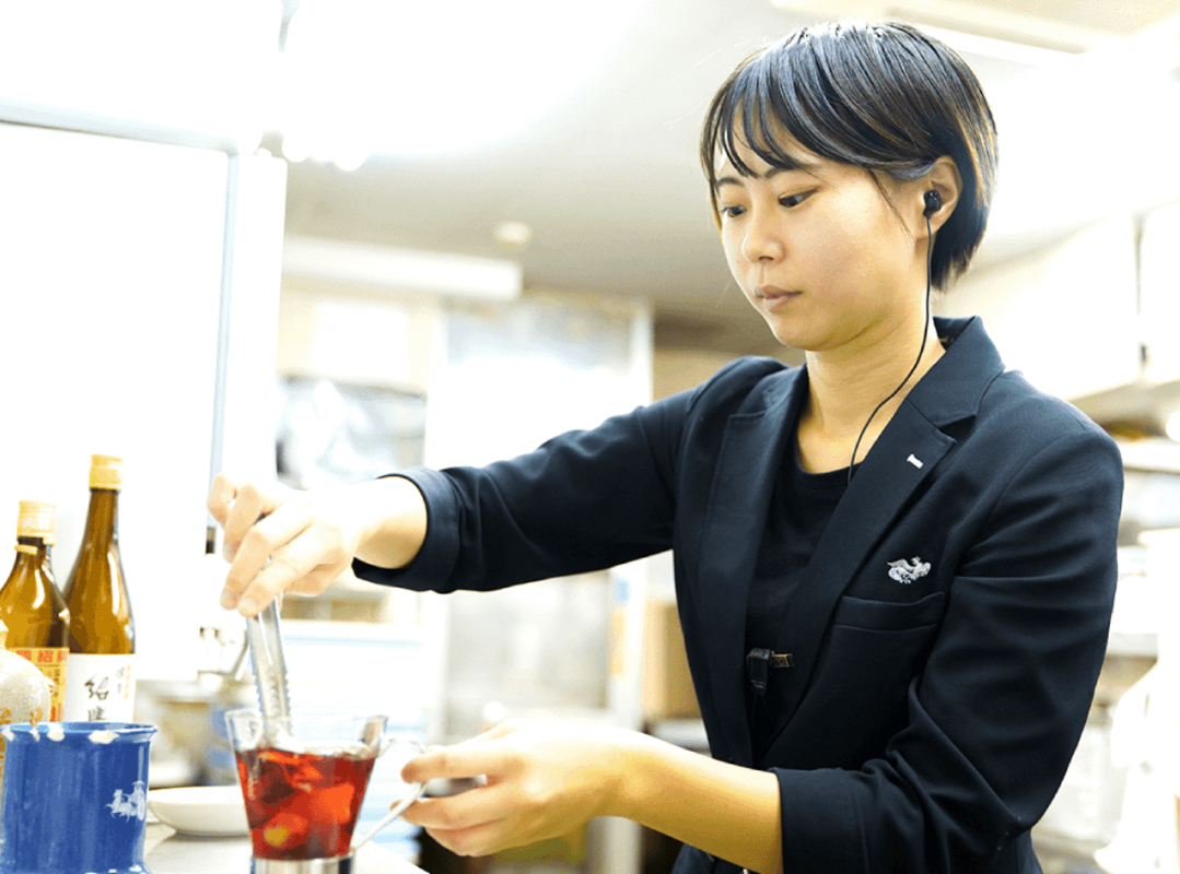 おすすめした料理がおいしいとお客様に喜んで頂けた瞬間にやりがいを感じます。顔や名前を憶えてくださったり、毎週のように会いにきてくださったり、お客様から感謝いただけるのが嬉しいです。