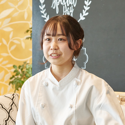 機転を利かせることで、材料を無駄にせず、余すことなく使い切れる、という先輩の指導に最初は驚きました。それはもう、一つのデザートの完成品であり、失敗作ではありません。柔軟に対応することで、アイデアは無限に広がるし、創作の意欲もみなぎります。現場でしか学べないことをどんどん吸収し、知識も技術も磨きたいです。