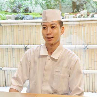 日本料理の世界は、特に厳しいと思っていました。しかし、最初の親方がとてもいい方で、まずは日本料理の楽しさを教えてくださったのです。そのころは、毎日やることすべてが新鮮で、成長の実感もあり、どんどん日本料理に魅了されていき、お店を移りながら、さらに技術を磨いていきました。そんな中、あるお店で今の店主である辻さんと出会います。その後、また違うお店でも一緒になり、今では「御料理 辻」の料理人として働いています。辻さんは、とても尊敬できる方で、料理の技術も超一流です。また、お店の落ち着いた雰囲気も気に入っています。無駄が一切なく、今までで一番働きやすい職場です。