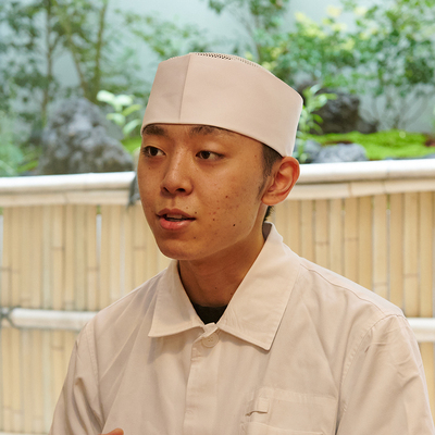 いつからか憶えていないのですが、気が付いたときには「将来、料理人になる!」と決めていて、高校も、調理系の学校へ進学しました。しかし高校を卒業する頃、高卒では自分の希望する就職先が全くないことを知り、専門学校へ進学します。就職活動のときには、いろいろなお店を食べ歩きしました。そこで出会ったのが「御料理 辻」です。食事をさせてもらったときは、本当に美味しくてとても感動しました。その後、インターン研修を申し込み、3日間お店の仕事を体験させていただきます。そのときも、とても居心地がよく、ここで働きたいと思っていたところ、お声掛けくださったので、お世話になることにしました。