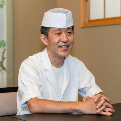 私は幼い頃から食いしん坊で、ぐずっていても食べ物を見たら泣き止むような子供でした。進路を決めたのは高校生の時。周囲のすすめもあって調理専門学校に進学し、卒業後は宿泊施設、料理屋などで経験を積みました。2023年春、長年料理長を務めていた施設の閉鎖を機に、昔からご縁のあった【京料理かじ】へ入社。現在は板場に立ち、日々お客様をお迎えしています。梶さん(大将)は私が20代の頃に勤めていたお店の上司(料理長)で、当時から料理の腕とセンス、若くして多くの料理人をまとめる才のある人だなと、尊敬の思いをもってお付き合いを続けてきました。歳月を経てふたたび共に働けることに感謝の日々です。