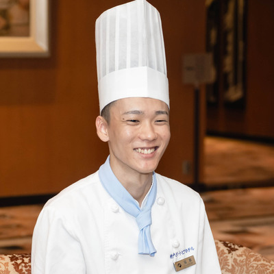 私が神戸ポートピアホテルに入社を決めた背景には、いくつかの理由があります。ひとつは規模の大きさ。幅広い経験を積みたいと考えていたので、さまざまなジャンルのレストランや3000名の宴会に対応するキャパシティを備えている点はとても魅力的でした。もうひとつは、両親が新婚旅行の際に宿泊したホテルだったということです。私にとっても“特別な場所”として憧れを抱いていたので、当時、高い倍率を突破して内定をいただいた時は本当に嬉しかったことを覚えています。入社後は70名近い同期メンバーがいて、ライバルの多さに一瞬ひるみましたが、元来の負けん気を発揮して強い気持ちで料理人としての第一歩を踏み出しました。