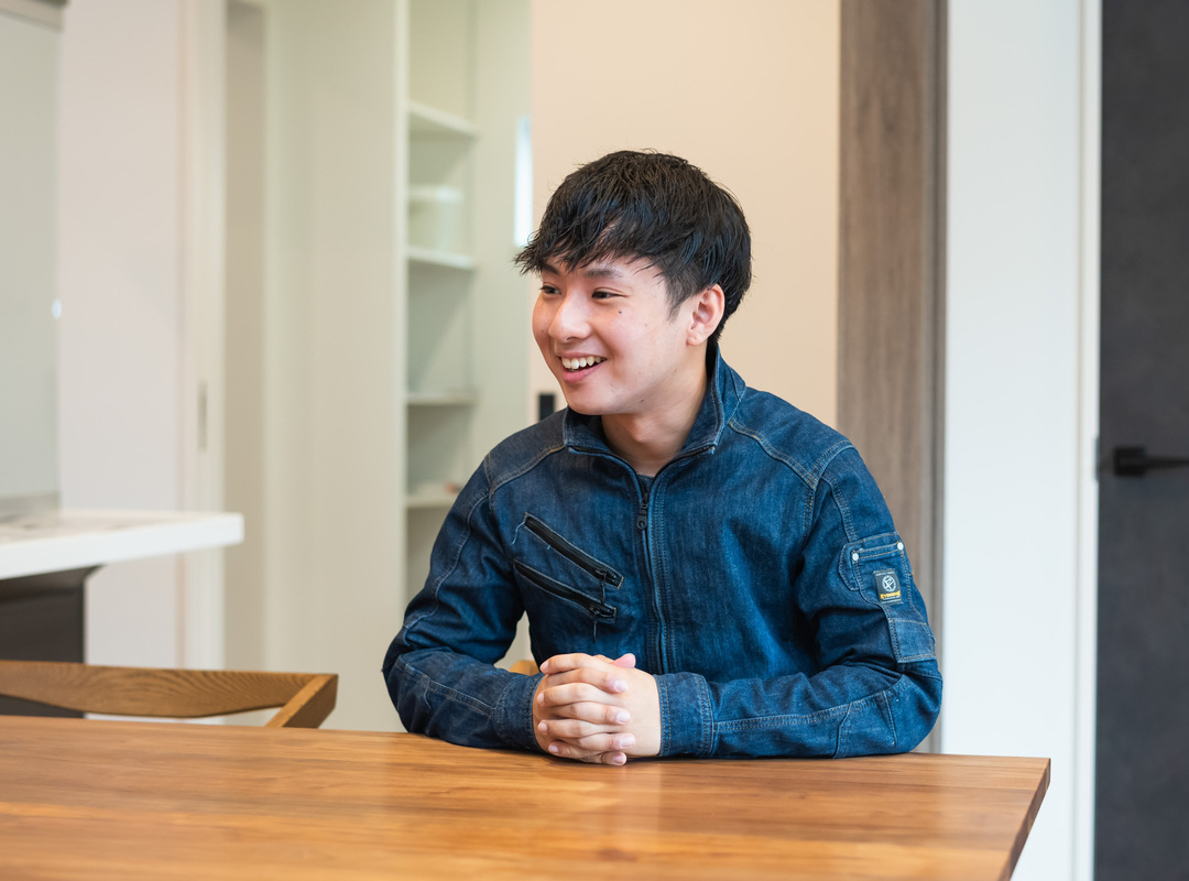 何もない土地の状態から、家が建ち完成していく過程を目の当たりにすると、本当にワクワクします。施工管理としては、スケジュールや予算管理で頭を悩ませることも多いと思うのですが、家が完成していく瞬間を見とどけることのできる喜びはきっとそれ以上。その醍醐味を味わうためにも、はやくひと通りの仕事を経験できるよう力をつけていきたいです。今はまだ、自分にできることは限られていますが、先輩から「君がいると空気が和むね」と言われたときは嬉しかったですね。元気の良さでは負けないぞ!との気概を大切にがんばります。