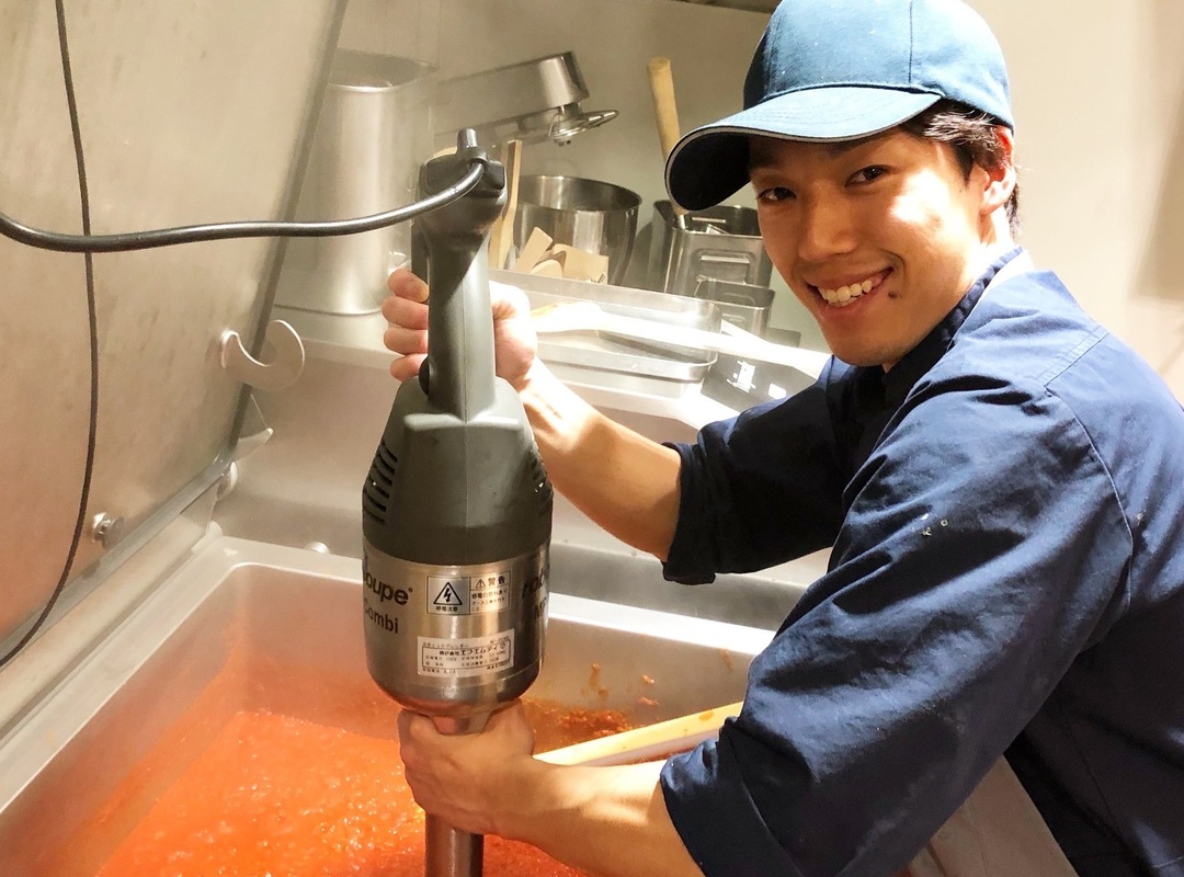 ラッフィナートに入社してからリストランテのキッチンに留まらずホール業務にも従事し、ソムリエの試験にもチャレンジしています。全ての店舗の仕事を一通りマスターし、この春からはセコンドシェフとして新たな挑戦をしています。