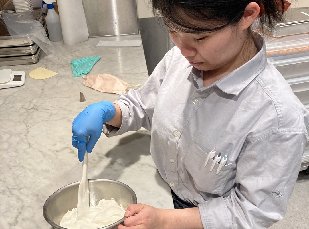 やはり手作りの工程が多い事もあって、しんどいことも多いですが、先輩方が優しく教えてくださるのと、本当に色んなお菓子に携わることができるので、沢山のことを学ぶことができています。これからも一人前の職人を目指して様々な経験を積んでいきたいと思います。