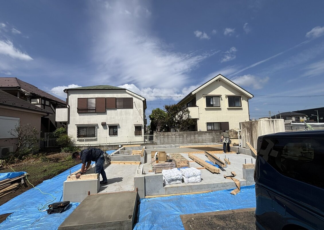 土台敷きが始まりました。上棟が今週末にあるので、準備を行なっていきます。