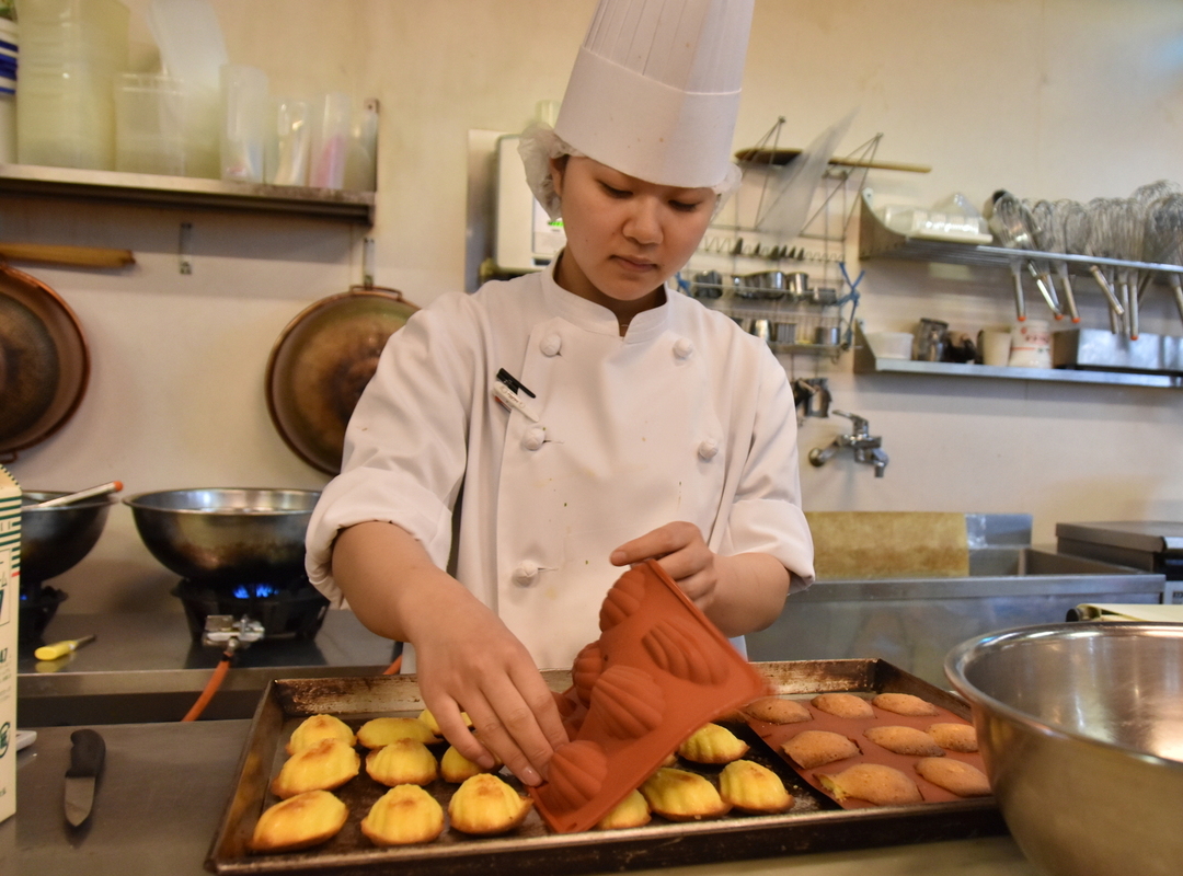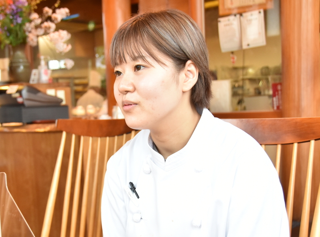 わたしはお菓子作りへの情熱はだれにも負けないと思います。お菓子作りは本当に奥が深く、研究熱心な私は、その世界にハマってしまい抜け出せなくなってしまいました。例えば、その日の気温、湿度によっても生地の仕上がりが変わってきます。入社3年目でやっと上手く作るコツを掴むことが出来ました。