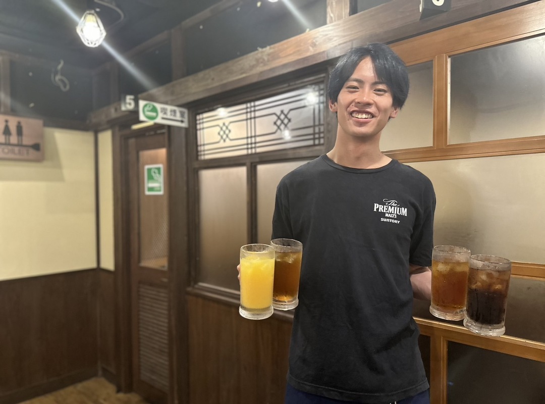 私は現役の大学生として学業を続けながら、社員としてこの会社で働いています。大学1年のとき、飲食店でアルバイトをしたいと思っていたところ、サークルの先輩に「焼肉 肉どうし」を紹介してもらったことがきっかけでした。職場の雰囲気が良かったのですぐに仕事にも馴染むことができ、気づけばほぼ毎日出勤するように。周りからは冗談で「もう社員になったら」と言われる中、私自身も「就職活動で一から自分にあう会社を探すより、楽しく働ける環境に出会えたことを大切にしたい」と思うようになり、2年の秋に社員になることを決めました。大学に通いながら正社員として働けるよう、環境を整えてくださった会社や仲間に感謝しています。