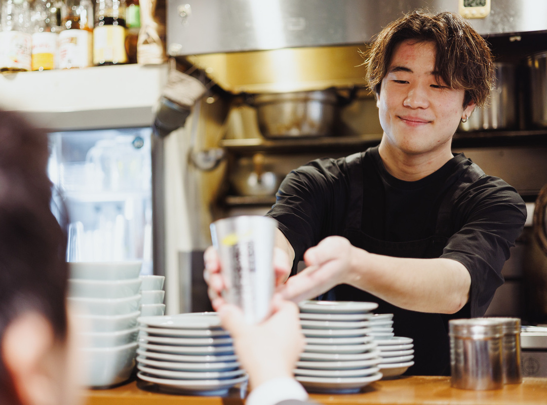 「焼肉 肉どうし」はカウンター席があり、お客様との距離が近いお店です。また、一部のメニューはテーブルで調理をさせていただくなど、お客様と直接会話をする機会も多くあります。私はもともと人と話すことが苦手でしたが、「プラスの一言を心がけよう」と挑戦する中で、少しずつ自然な会話ができるようになりました。あるとき、店内の「推しエール」(お客様から頑張っているスタッフへの投げ銭制度)という仕組みを通じて、エール(チップ)をもらえたときは本当に嬉しかったですね。そんな評価をいただけるとはまったく想像していなかったので、喜びも倍増でした。これからも自分らしく経験を積み、成長していきたいと思います。
