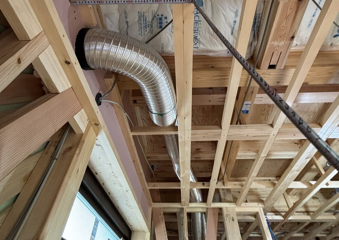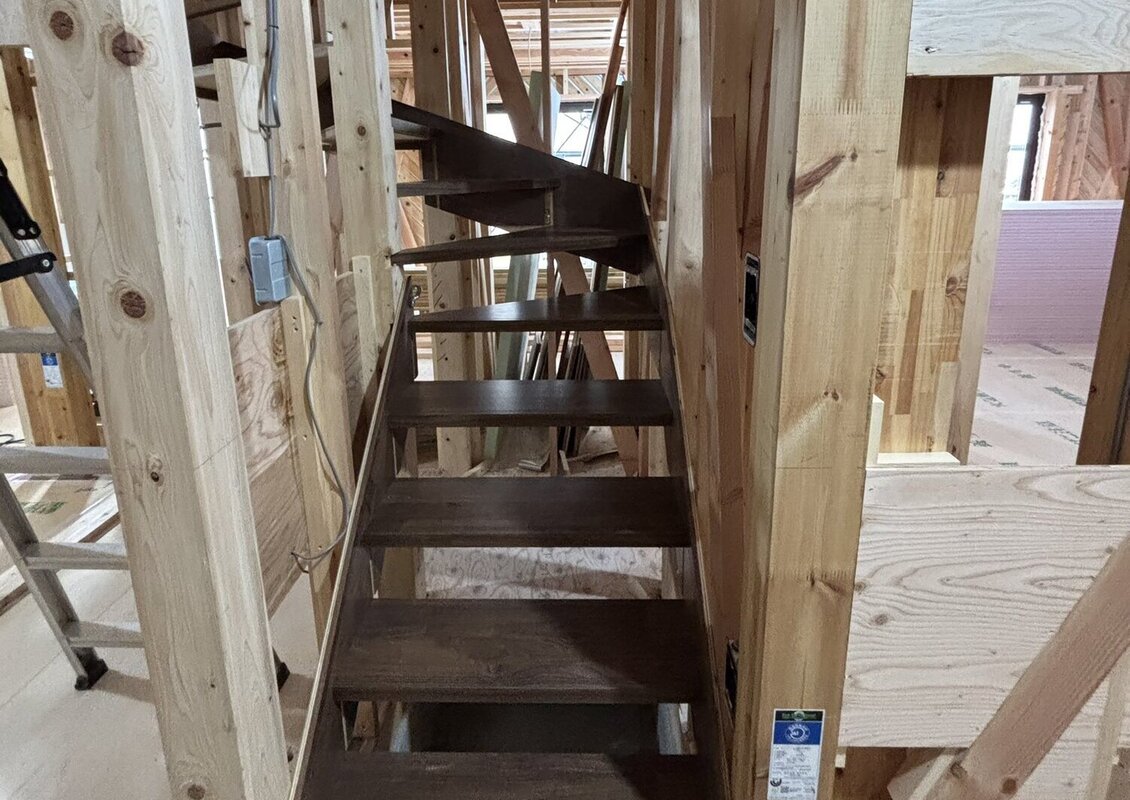 内部の木工事が進んでおり、現在は階段を施工中です。