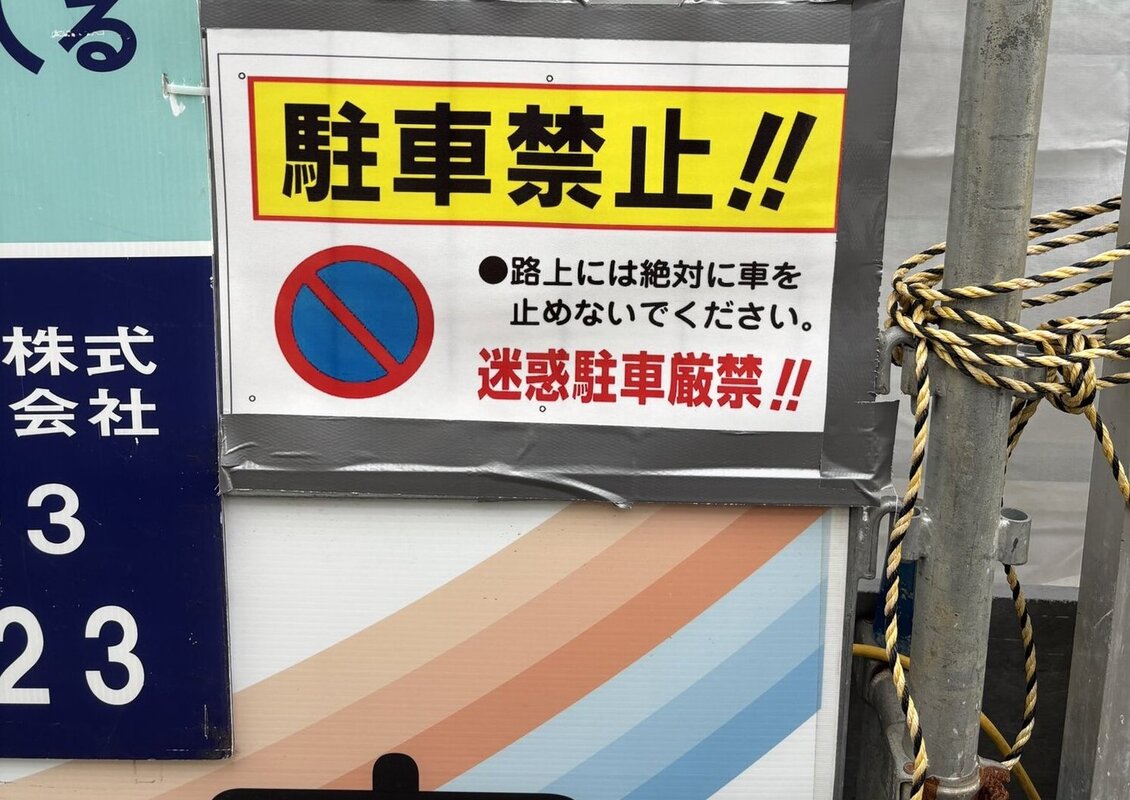 現場に駐車禁止の看板を設置しました