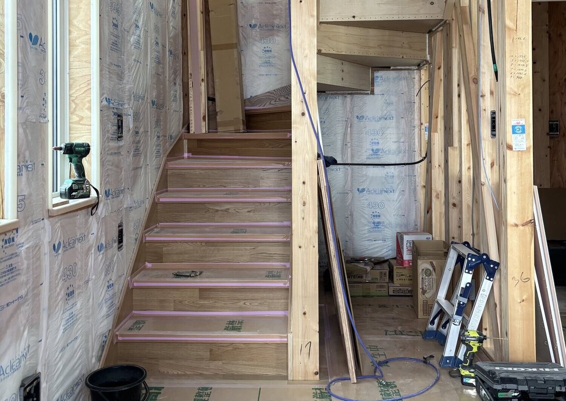 電気配線が進んだので、配線箇所などが図面通りに行われているかなど確認しました。