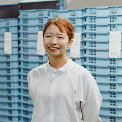 現在は、ロールケーキの中のクリームを練る仕事、また、出来上がった商品を検品する仕事を曜日ごとに行っております。クリームは大体24kgほどあり、思ったよりも体力仕事で最初は苦戦してましたが徐々に慣れてきました。様々な年齢層の方がいるので、最初は馴染めるのか不安でしたが、皆さんがたくさん優しく教えてくれて、業務外でも話しかけてくれたり一緒にご飯を食べたりしてくださるので、すぐに馴染むことができました。社員パートみんなでフォローし合える環境だと感じています。