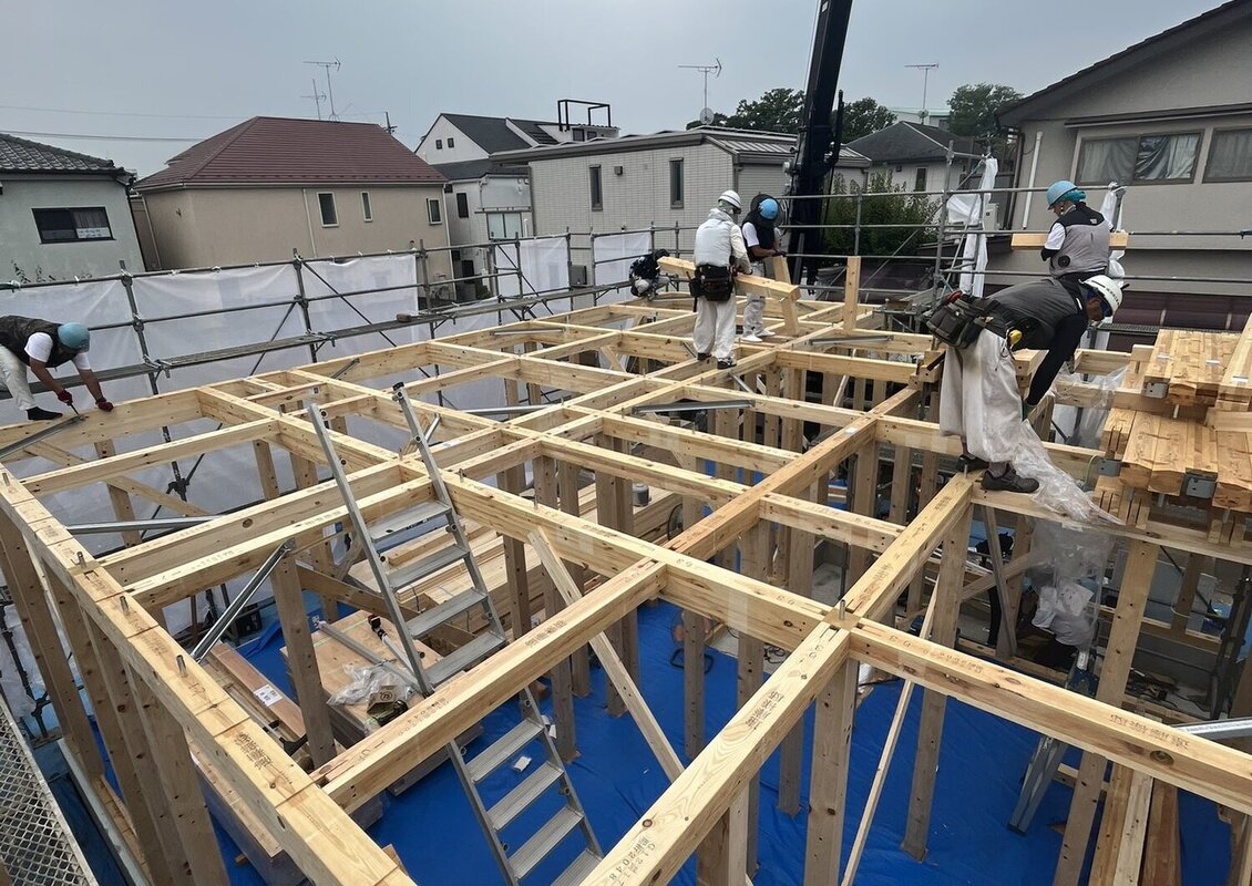E邸の上棟に参加しています。