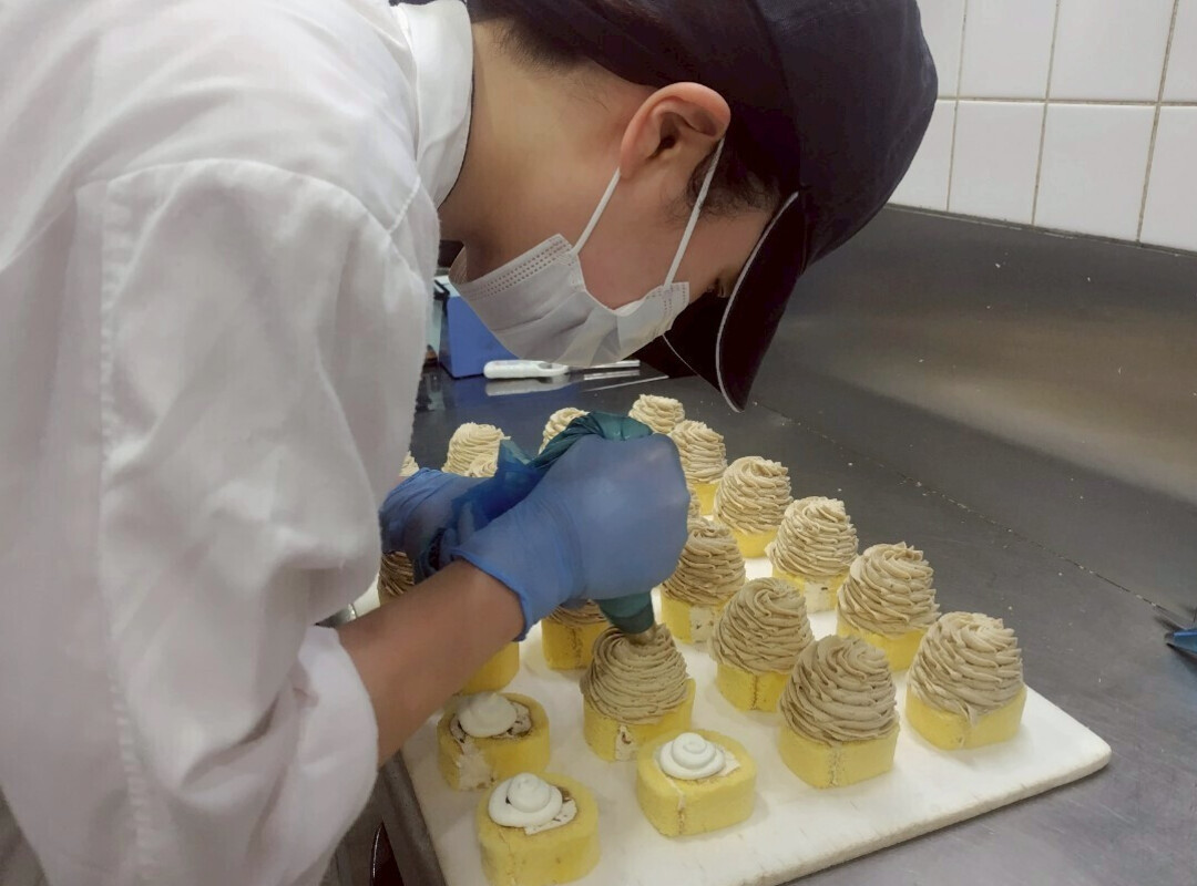 パティシエの仕事はスピードも求められ、技術も必要なので初めはうまくできなかったり、時間がかかったり、不安も多いと思います。でもル・ピノーの先輩方は知識も豊富で、手際も良く美しい商品を作れるように指導してくださるので、必ず上達できます!コンテストにも挑戦でき、幅広く経験を積める環境です。