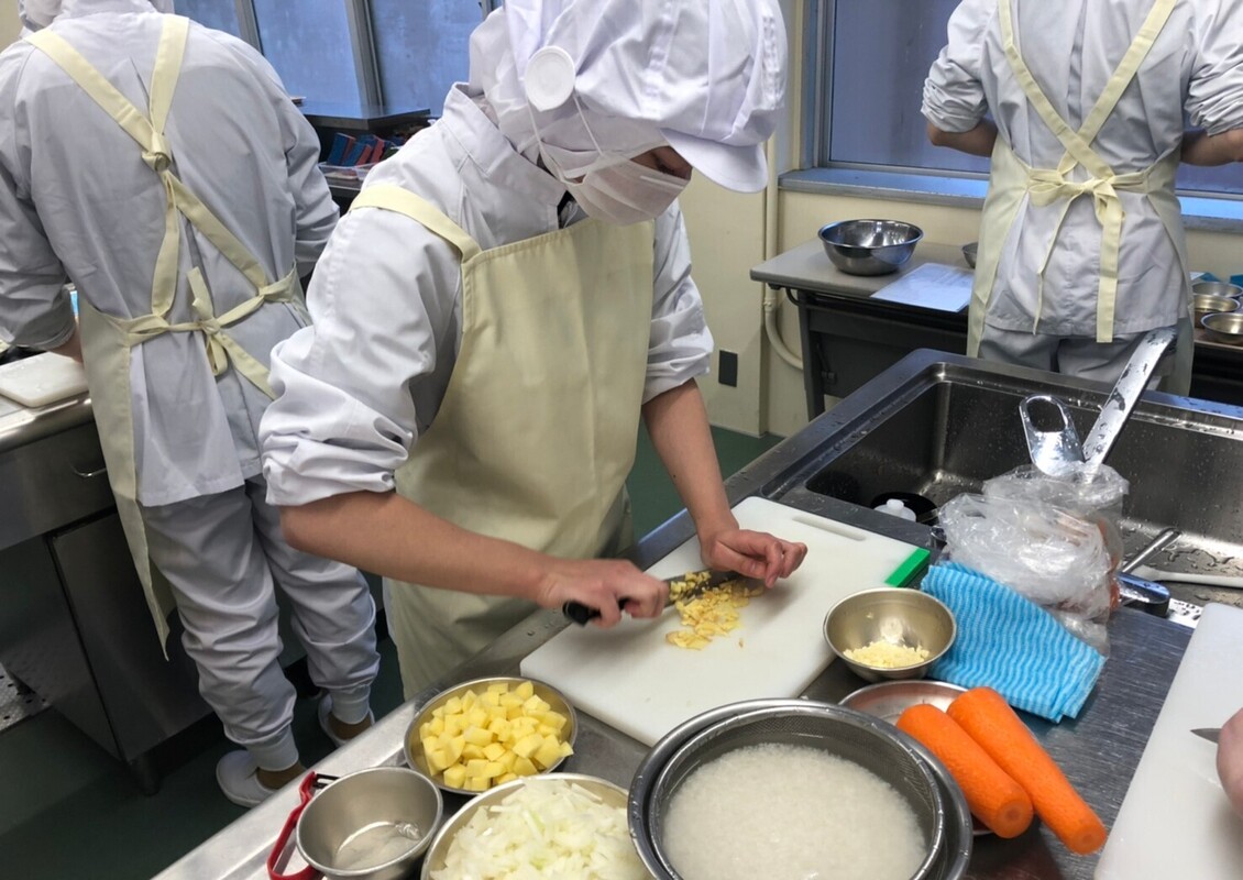 株式会社藤江の新卒研修では、学校給食現場での実習と本社での集合研修を通じて、調理技術だけでなくチームワークや衛生管理、報連相の大切さを学びました。先輩方の丁寧な指導や温かいサポートのおかげで、日々の仕事に自信が持てるようになりました。子どもたちの「おいしかった!」の声がやりがいにつながり、今後はより多くの人に安心でおいしい給食を届けられるよう、スキルアップを目指していきたいです。