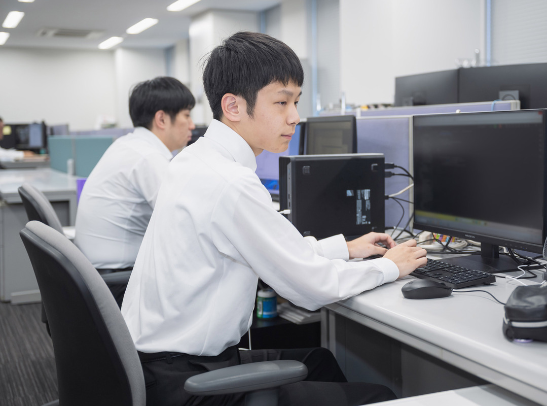 入社後の約三か月は、ビジネスマナーや社会人としての考え方を学びながら、プログラミング言語など実務に必要なスキル研修を受けました。七月には取引先への同行から自然な流れで現場業務に移り、金融系企業のバックアップシステム開発を担当。初めて扱うプログラムでしたが、研修で得た知識をそのまま実践に生かせたので、落ち着いて取り組むことができました。わからない部分は先輩に相談したり、AIを使って構文を確認したりしながら完成させ、現地で微調整を加えて無事に納品。自分の手で作り上げたプログラムが、実際に稼働したときはやはり嬉しかったです。お客様から直接感謝の言葉をいただけたことも、大きな励みになりました。
