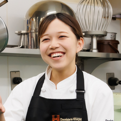 高校は調理師を養成する地元の高校の食物科に進学し、卒業後は大阪の辻調理師専門学校へ。中学生の頃から「洋菓子職人になる」と決めていた夢を叶え、今は憧れていた仕事に就けて、本当に毎日が楽しいです。
