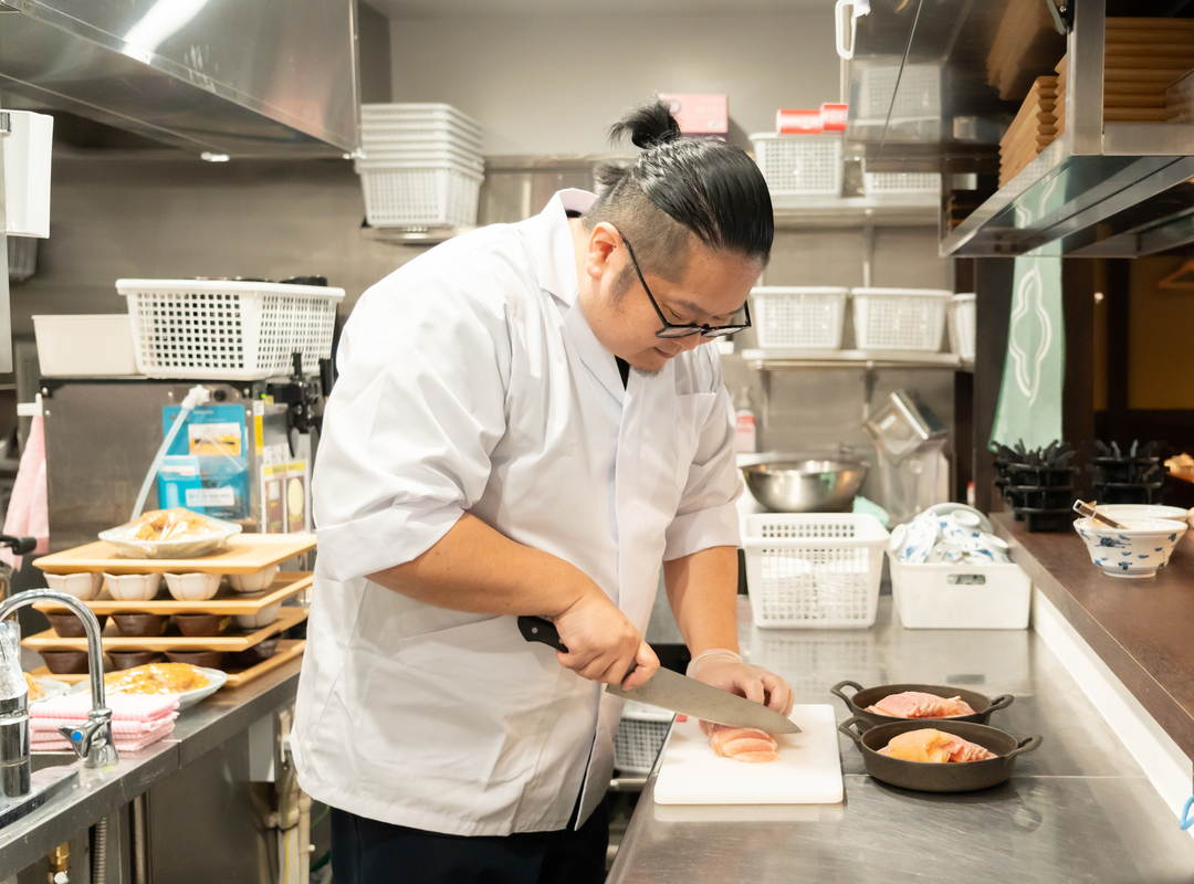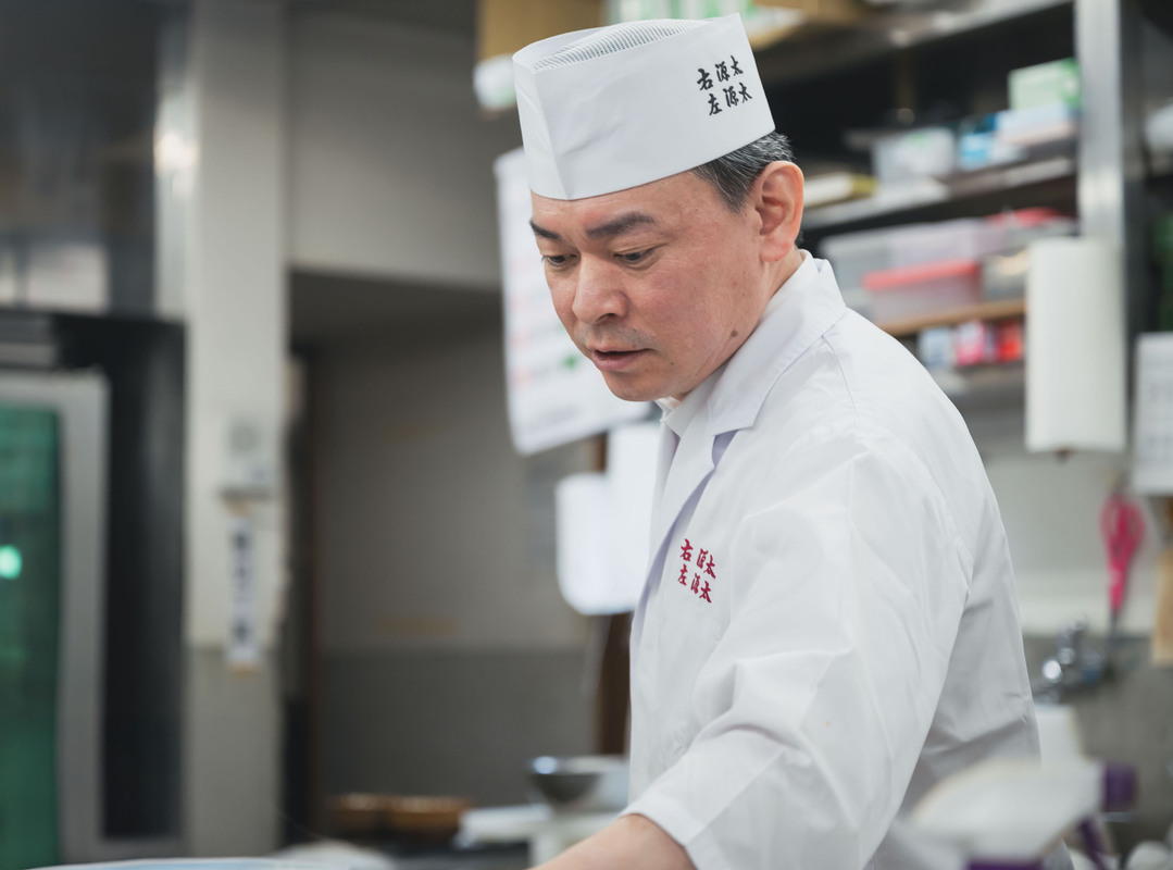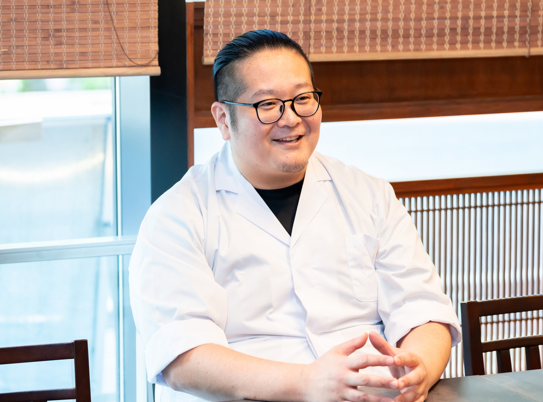 10代のころアルバイトをしていた仕出し屋で、自分が盛り付けた料理をお客様が「美味しい」と言ってくださったことが嬉しくて、この道に入りました。はじめは親戚の経営する寿司屋に就職、その後ホテルの和食調理、割烹料理店、祇園の料理店などで経験を積み、現在に至っています。右源太に入社したきっかけは、料理人として地元・京都に根を下ろしたいと考えていたとき、当社の求人を見つけたことが始まりでした。当時は今ほど川床料理が有名ではなく、未知の世界も多くありましたが、何よりも貴船の土地、自然の多い環境が気に入って入社を決意しました。