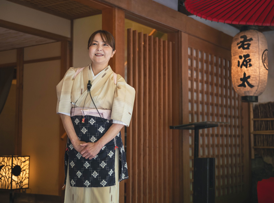 長年、飲食業の接客サービスに従事しており、以前は大阪の料理店で仲居の仕事をしていました。右源太に入社したのは、以前の同僚からの紹介がきっかけです。それまで“貴船”の名前は知っていたものの、訪れたことはありませんでした。でも、実際に足を運んだ瞬間、空気の違い、川の音、自然の豊かさに圧倒され、「この環境で、大好きな接客の仕事ができるなら素敵だな」と思い、入社を決めました。今は片道2時間かけて毎日大阪から通っています。周りからは驚かれることもありますが、それでも苦にならないのは、ここでしかできない経験がたくさんあるからだと思っています。