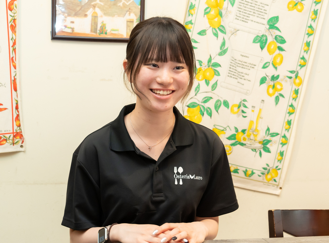 PIUMOREの魅力は、まるで家族のような温かい人間関係です!シェフはお父さん、店長はお母さん、キッチンスタッフはお兄ちゃんみたいに、いつも優しく見守ってくれます。他のバイト仲間も兄弟姉妹みたいに仲が良く、本当にアットホームな雰囲気です。働き始めた頃、お客様のお水をこぼしてしまい、パニックになった時も、店長がすぐに駆けつけてフォローしてくれて。失敗からどう学ぶか、お客様にどう向き合うかを学びました。最初は人見知りでしたが、話しやすい雰囲気のおかげで、今では初対面のお客様ともコミュニケーションを取れるようになってきました。温かいサポートがあるから、安心して色々なことに挑戦できています!