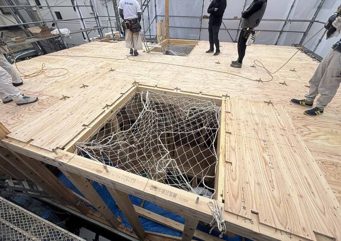 順調に進み、午前中は2階の床まで終わりました。