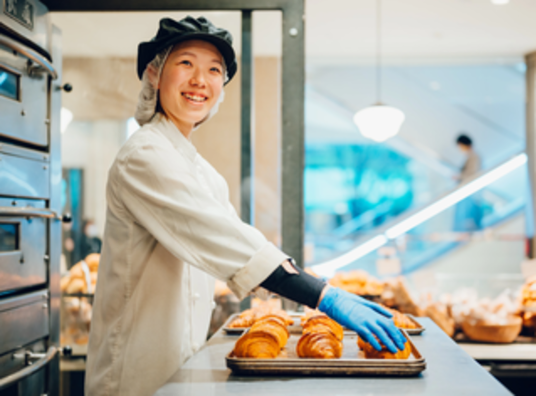 現在、LePetitMec(ル・プチメック)日比谷店の製造チームでパン製造を担当しています。短大を卒業後2024年4月に新卒として入社し、パンの製造を担当しています。ベーカリーは朝の時間帯が命です。お客様が来店される時間帯により多くのパンを並べておかなくてはいけないため、スピードを意識した作業が求められます。また、合間にサイドメニューの仕込みを行ったり、作業効率を上げるための工夫をしたりしたりと…毎日忙しいですが、常に学びながら仕事ができています。